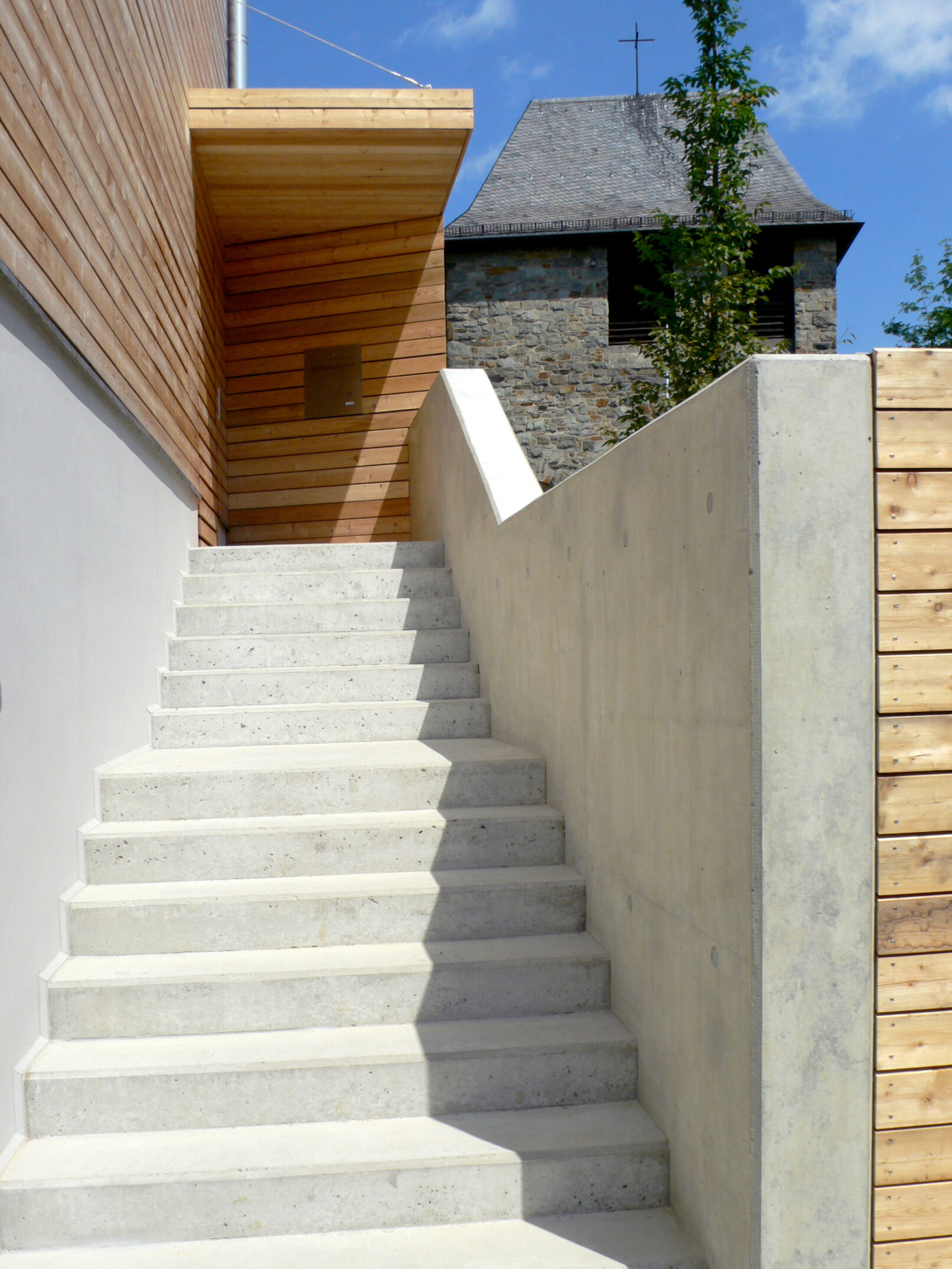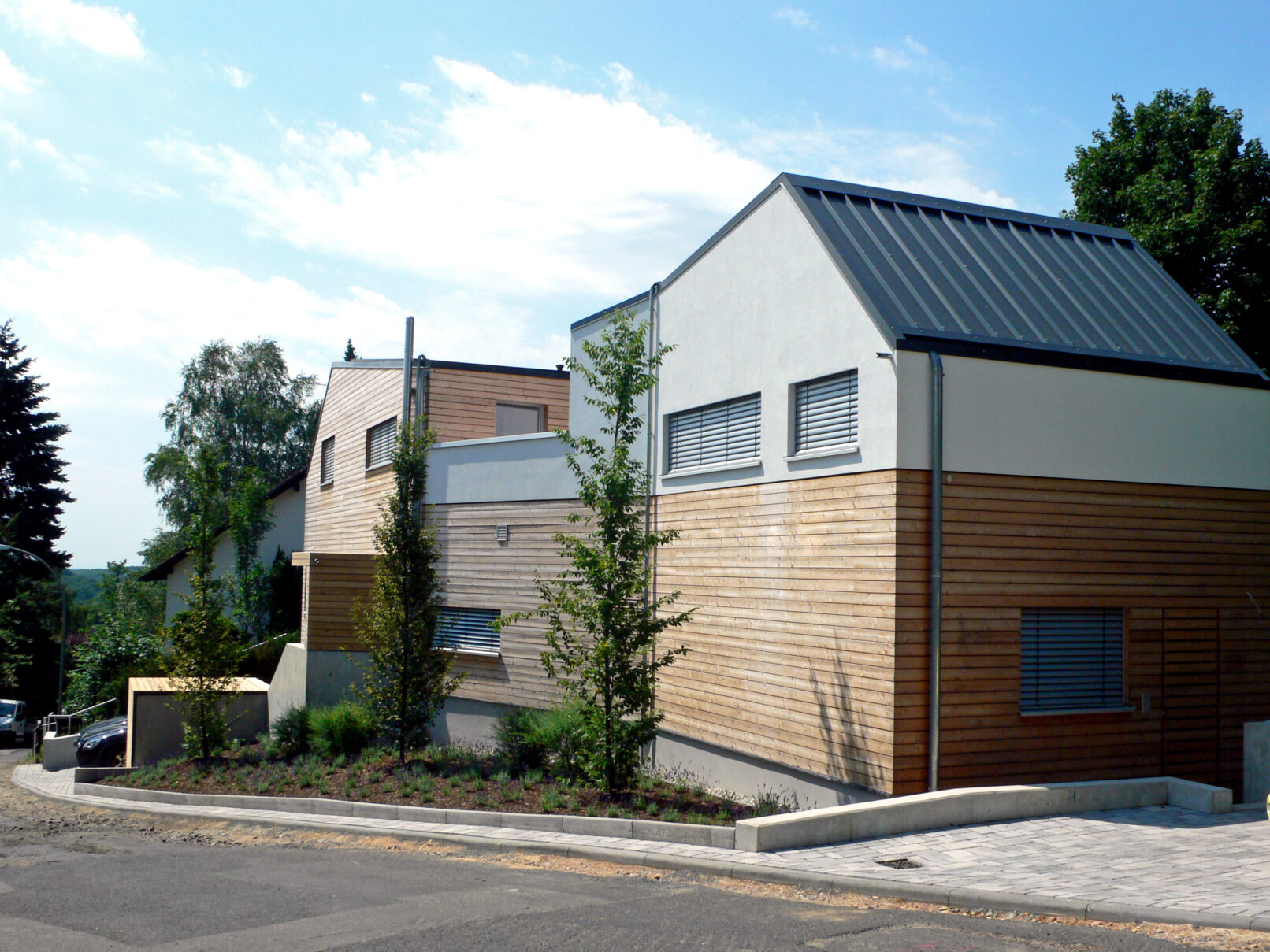 Der Entwurf setzt eine präzise Kante zur Straße und schafft gleichzeitig trotz des ungünstigen Grundstückszuschnitt durch die gewählte Gebäudeform einen qualitativ hochwertigen Außenbereich.