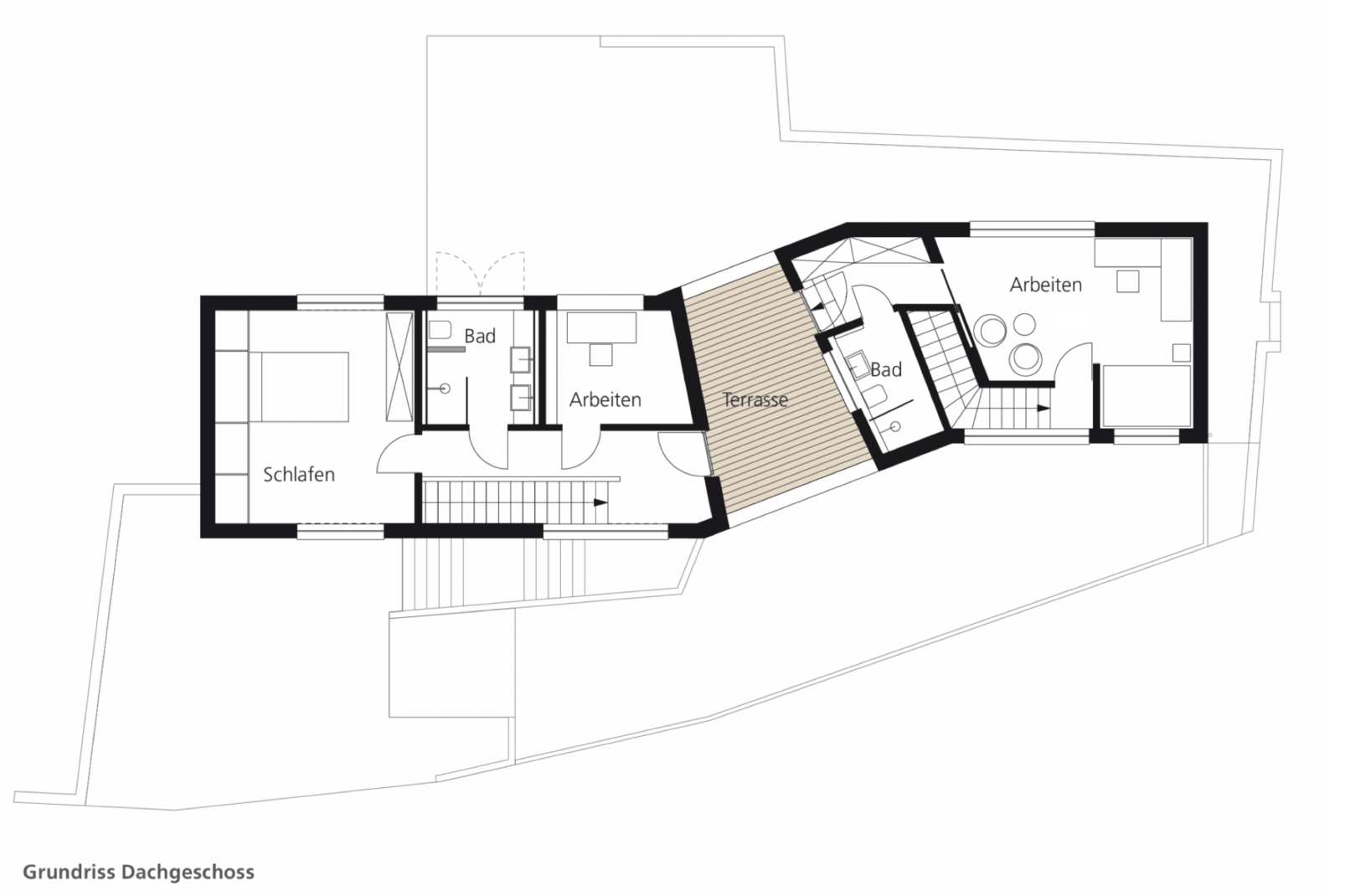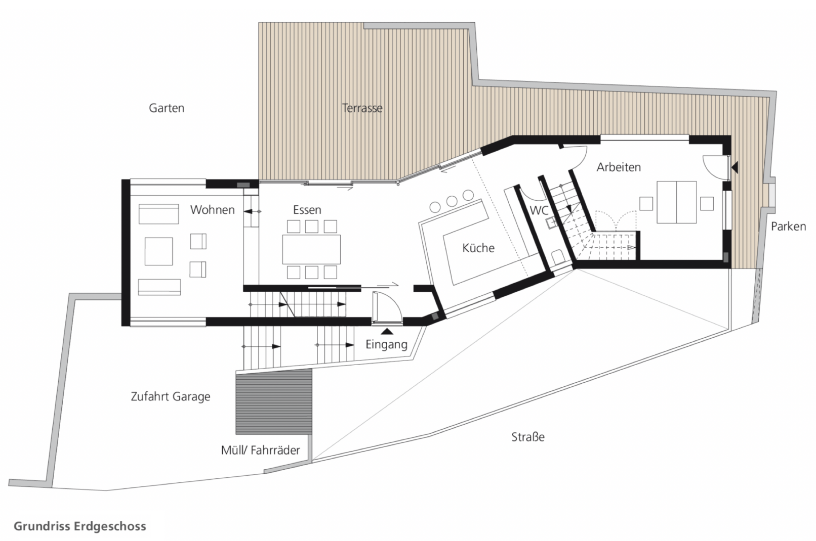 Ein ungewöhnlich geschnittenes, annähernd dreieckiges Grundstück verlangt nach einer ungewöhnlichen Lösung.
