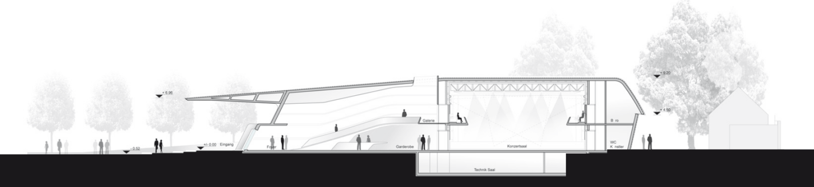 Der Entwurf stellt sich dem Widerspruch zwischen kleinteiliger Dorfstruktur und dem von Natur aus städtischen Konzerthaus. Um dem Virtuosestem des Tonkünstlers Franz Liszt und seinem Schaffen gerecht zu werden, bedarf es eines außergewöhnlichen Gebäudes mit einer sinnlichen uns spannungsvollen Architektur. Ein Ort der einlädt, die Musik des Künstlers in einem gebührenden Rahmen zu zelebrieren und damit den musikalischen Abend zum bedeutenden Ereignis werden lässt.