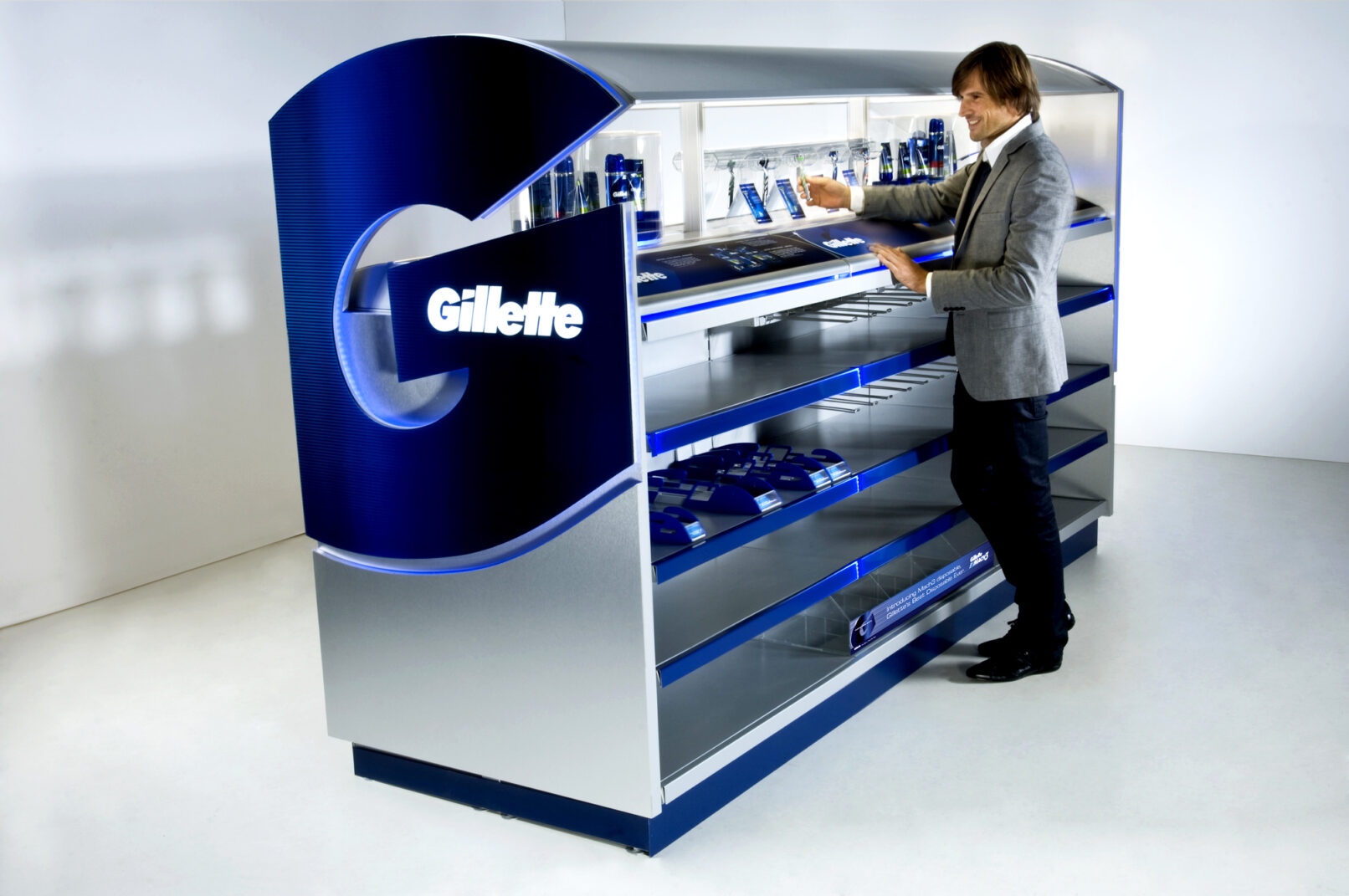 Mit der Shop-in-Shop-Lösung, die seit 2009 bereits in vier europäischen Ländern platziert wurde, unterstreicht Proctor & Gamble den Führungsanspruch von Gillette. Die Zweitplatzierung setzt auf hochwertige Materialeffekte und etabliert eine Customer Journey, die den Shopper vom markanten Ersteindruck über ein interaktives Produkterlebnis bis hin zu einer klar strukturierten Sortimentsdarstellung führt.