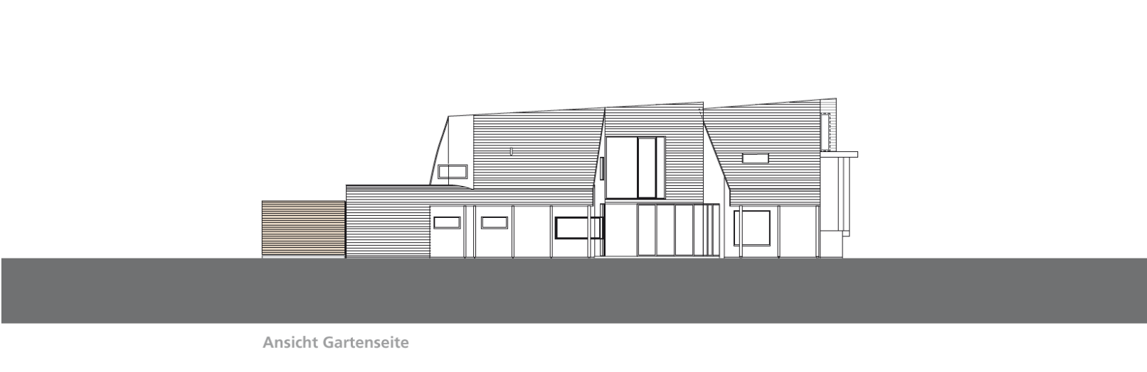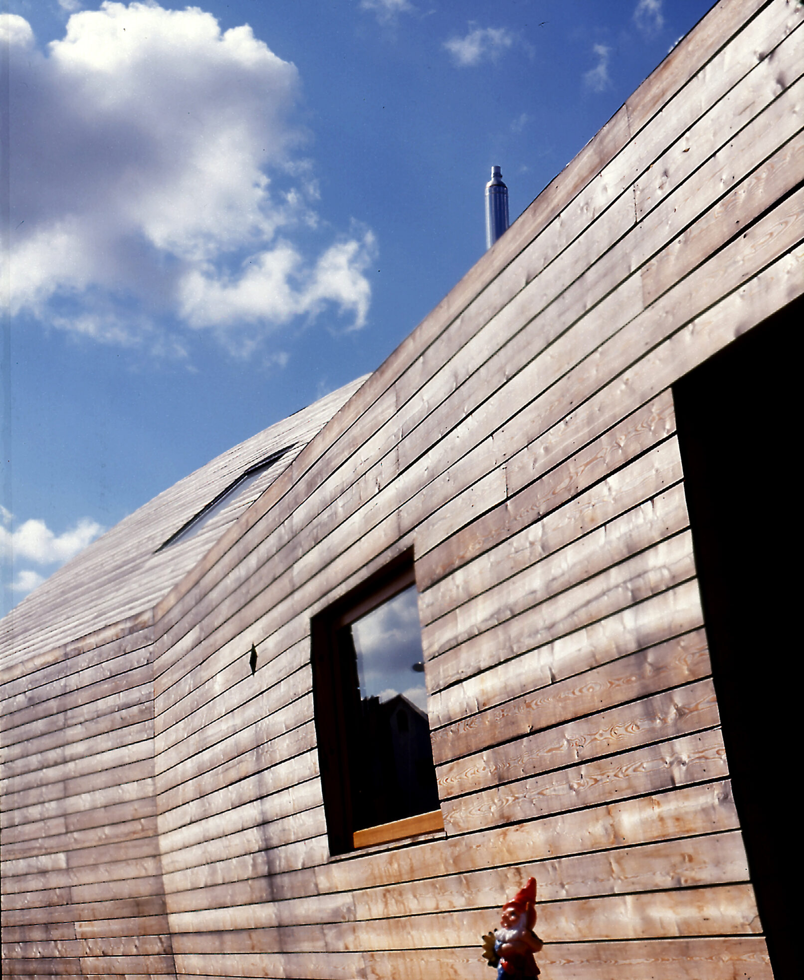 Die durchgehende Beplankung der Aussenhülle bricht mit dem klassischen Prinzip von Wand und Dach.