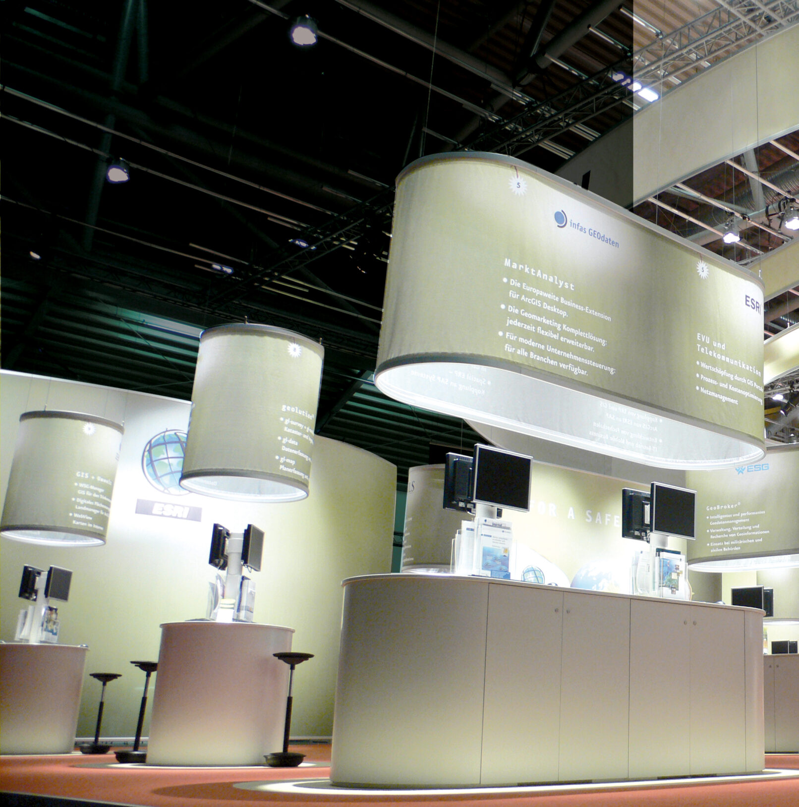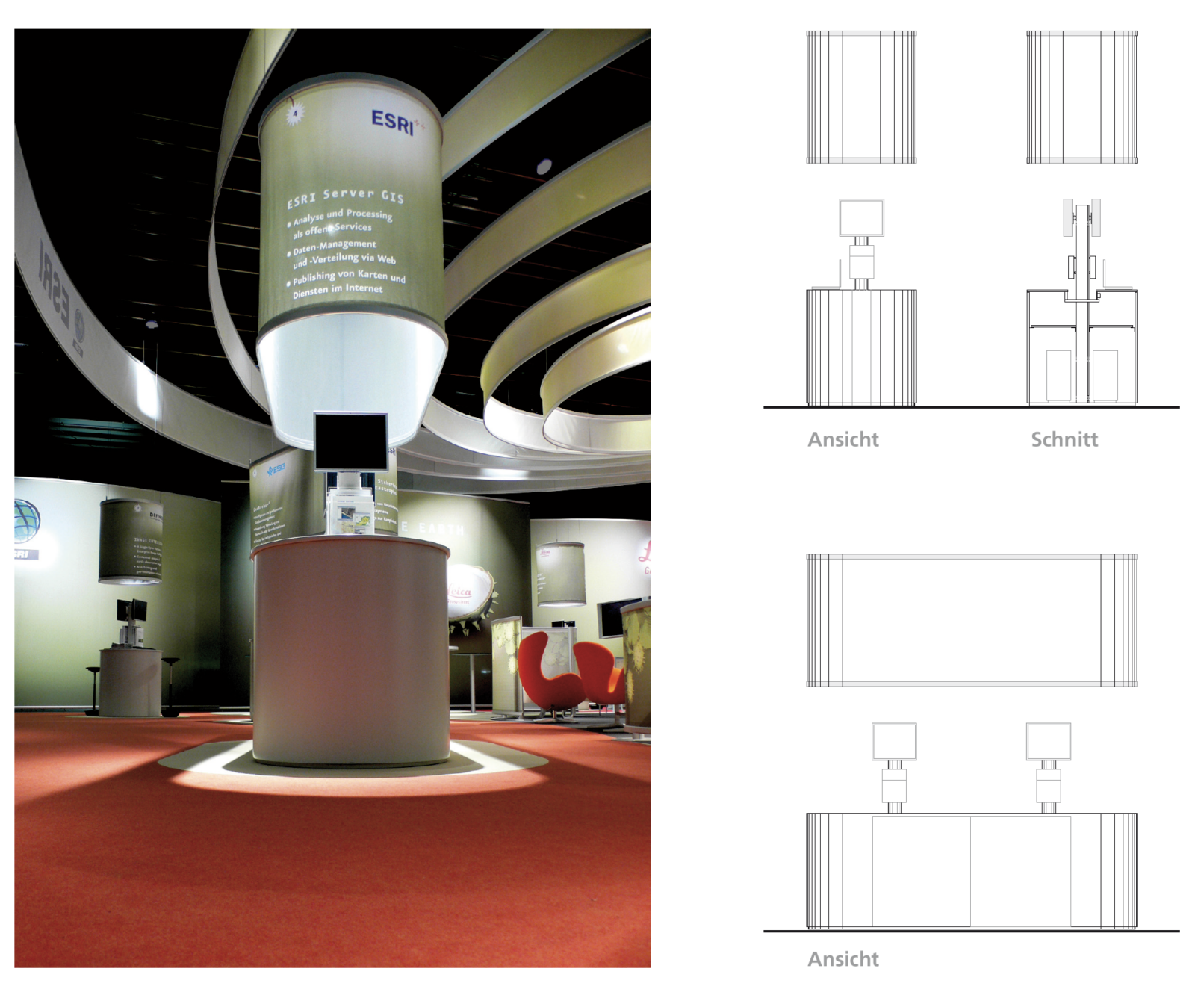 Räumlich wird die Idee in Form eines abstrahierten Kastanienbaumes umgesetzt, mit einer den Stand überspannenden mehrschichtigen Deckenellypse als symbolhafte Baumkrone.